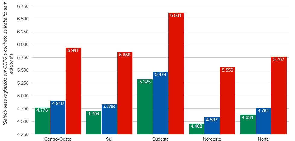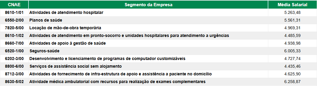 Média salarial: média aritmética simples de todos os salários registrados para profissionais da categoria CBO 2235-10.